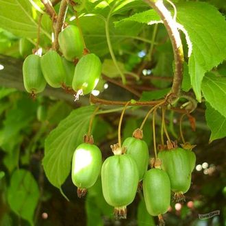Цветки ненавязчиво пахнут лимоном, а плоды обладают приятнейшим мускатным ароматом! Созревают в середине августа. Крупные, цилиндрической формы, массой 3–4 г. Кожица желтовато-зелёная с едва заметными полосами, а под ней — нежная и сочная душистая мякоть кисло-сладкого вкуса. Содержание витамина С в плодах в 5 раз (!) выше, чем в чёрной смородине. Употребляют их свежими или используют для заготовок. Лианы высотой до 4 м, очень морозостойкие. Выращивают на опорах, шпалерах как пристенную культуру, но можно формировать и в виде куста. Лучше всего растут в небольшой тени. Плодоносить начинают на 3-й год, тогда же появляется и цветная окраска листьев. Растение двудомное, для опыления нужен мужской экземпляр.