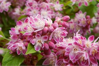 Дейция ценится за небольшую высоту, округлую форму куста с тонкими, дугообразными ветвями и очень обильное продолжительное цветение в июне-июле, поэтому рекомендуем Вам купить саженцы дейции обязательно.