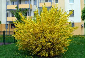 Эта разновидность форзиции не вырастает выше полутора-двух метров. У нее раскидистая крона и ярко-желтые крупные цветки. Форзиция промежуточная, являясь смесью форзиции поникшей и зеленой, сумела взять от родителей лучшие декоративные качества.