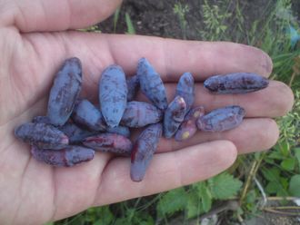 Ягоды удлиненно-овальные, синие, с кожицей средней толщины, очень крупные, длиной 3.5-4.5см, средняя масса ягод 1.8-2.0г.